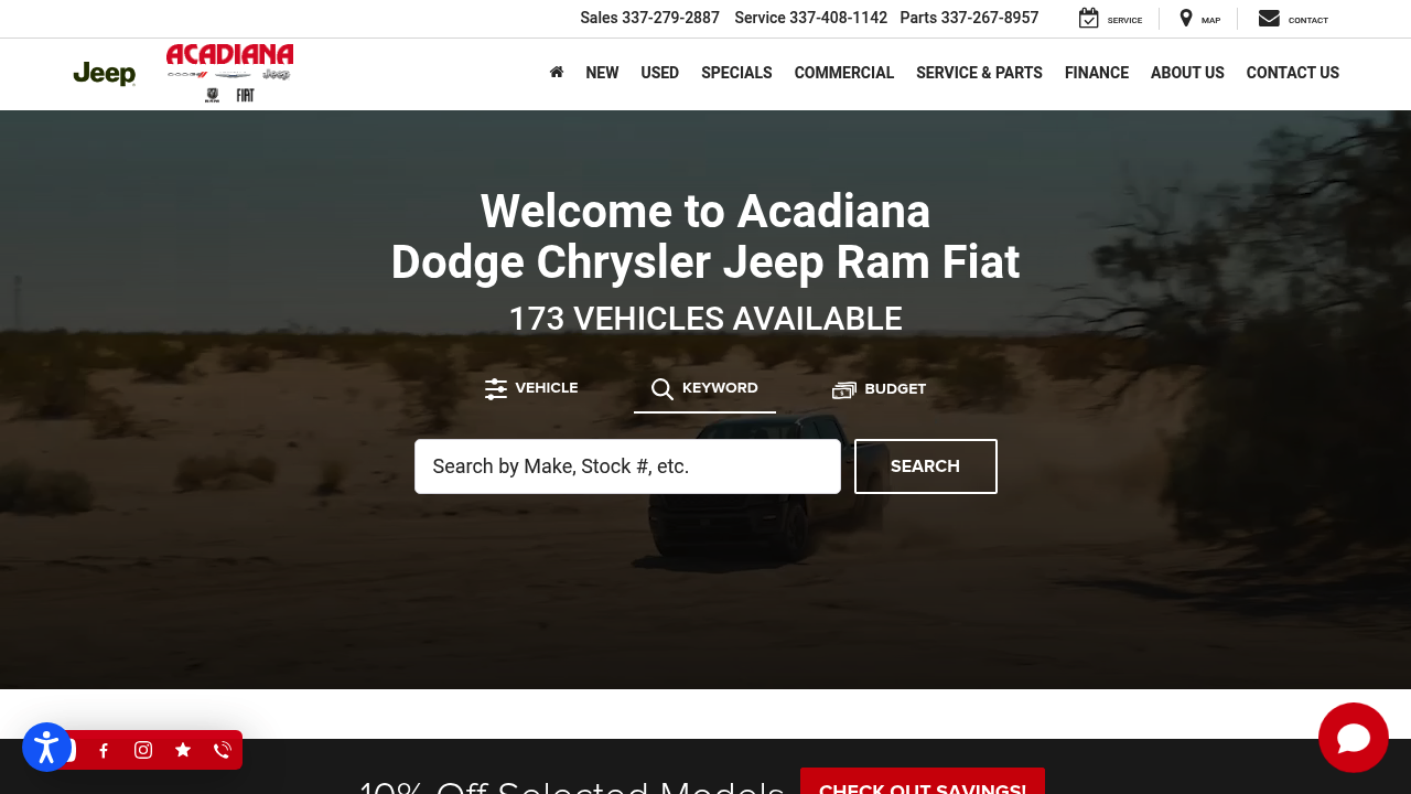 Acadiana Dodge Chrysler Jeep RAM Fiat is your source for new and used vehicles in Lafayette, LA! We also offer Acadiana Dodge service and OEM parts.