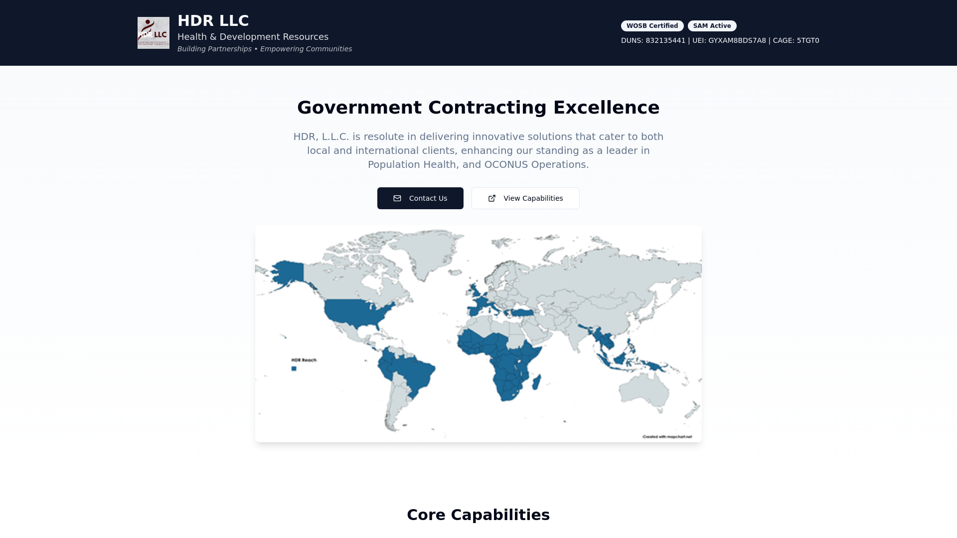 COMPANY OVERVIEW With over 20 years of experience, HDR provides strategic consulting, innovative solutions, and managed services tailored to meet the needs of public health entities, not-for-profit organizations, and government agencies. CORE CAPABILITIES HDR operates with a strong emphasis on quality, efficiency, and innovation, offering a range of services that align with the diverse needs of its clients: i) Public Health Consulting; ii) Strategic Consulting & Program Management; iii) Data Science & Analytics; iv) Technology Integration & Innovation; v) Diversity and Equity-Focused Initiatives; vi) Global Expertise & Local Insight. DIFFERENTIATORS: Innovative Solutions; Experienced Leadership; Agility and Flexibility; Commitment to Excellence.
