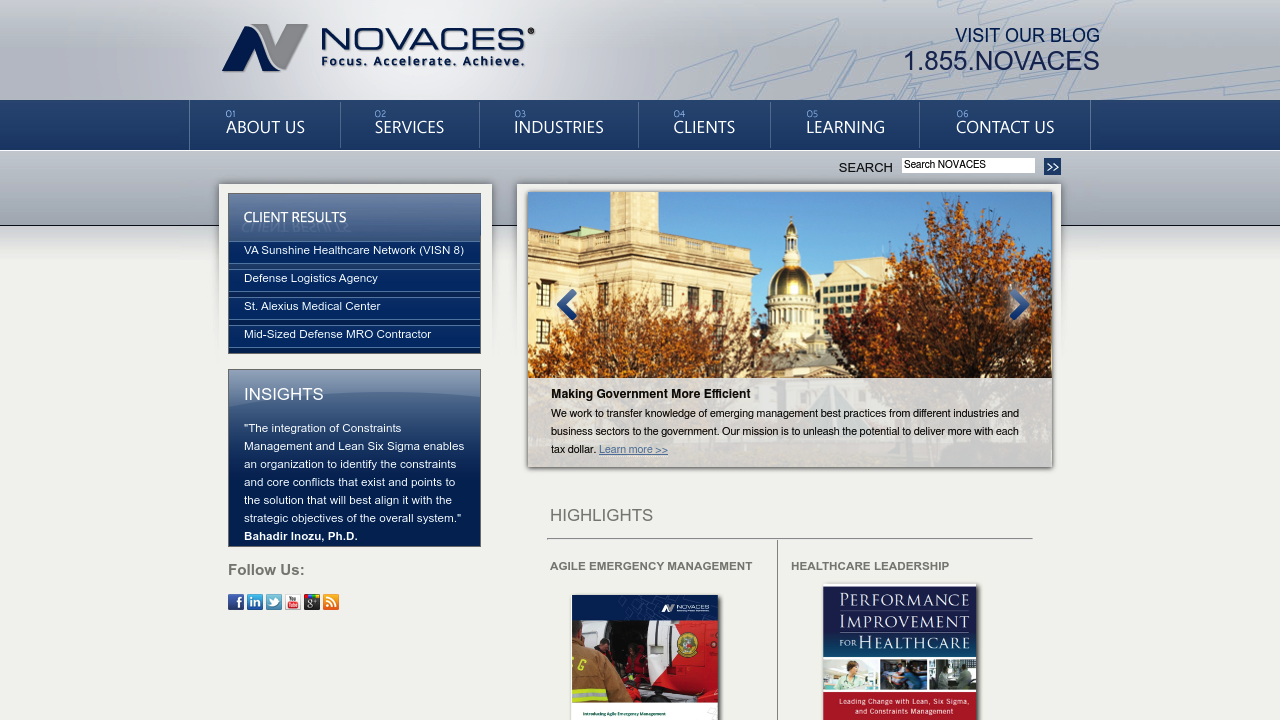 We are a management consulting firm that provides performance management, continuous process improvement (CPI), and project management services to both public and private sector organizations. NOVACES helps clients build capabilities in today's most effective methodologies to achieve breakthrough operational and financial results.